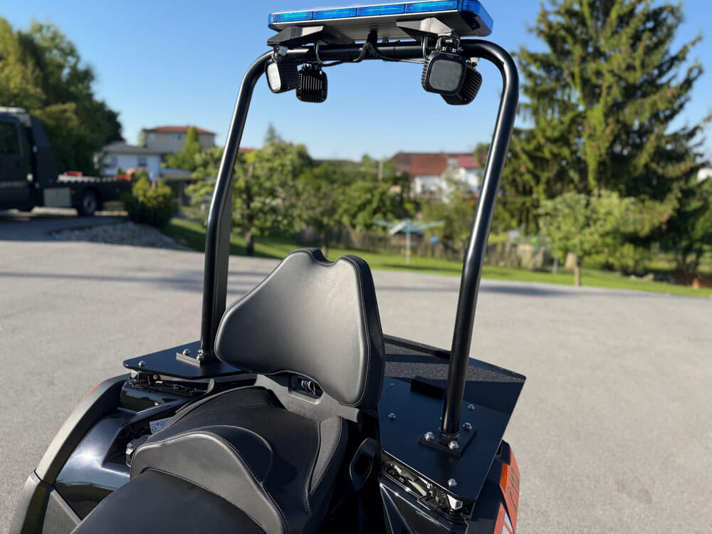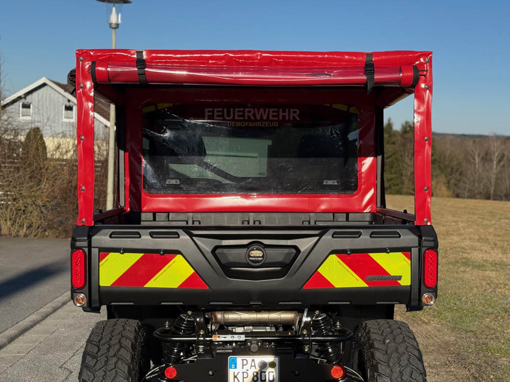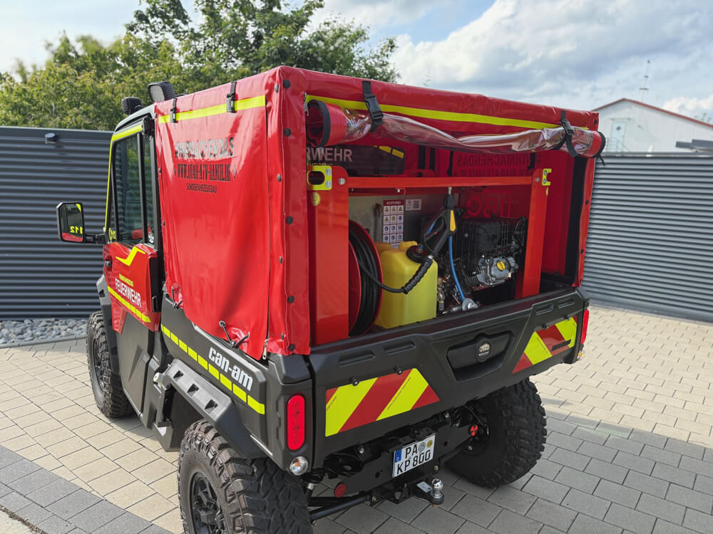 Ob bei Vegetationsbränden im unzugänglichen Gelände oder bei der Rettung verunglückter Personen abseits fester Wege – unser UTV bringt Kräfte und Ausrüstung genau dorthin, wo herkömmliche Fahrzeuge scheitern. Mit kompakter Bauweise, Allradantrieb und hoher Bodenfreiheit ist es schnell vor Ort, auch in steilstem Gelände, dichten Wäldern oder auf schmalsten Trampelpfaden. Ausgerüstet mit Hochdrucklöschsystemen, medizinischer Notfallausstattung und Halterungen für Schleifkorbtragen wird das UTV zur mobilen Erstangriffseinheit – effektiv, flexibel und sofort einsatzbereit. Unverzichtbar für jeden, der retten will, wo andere nicht hinkommen.