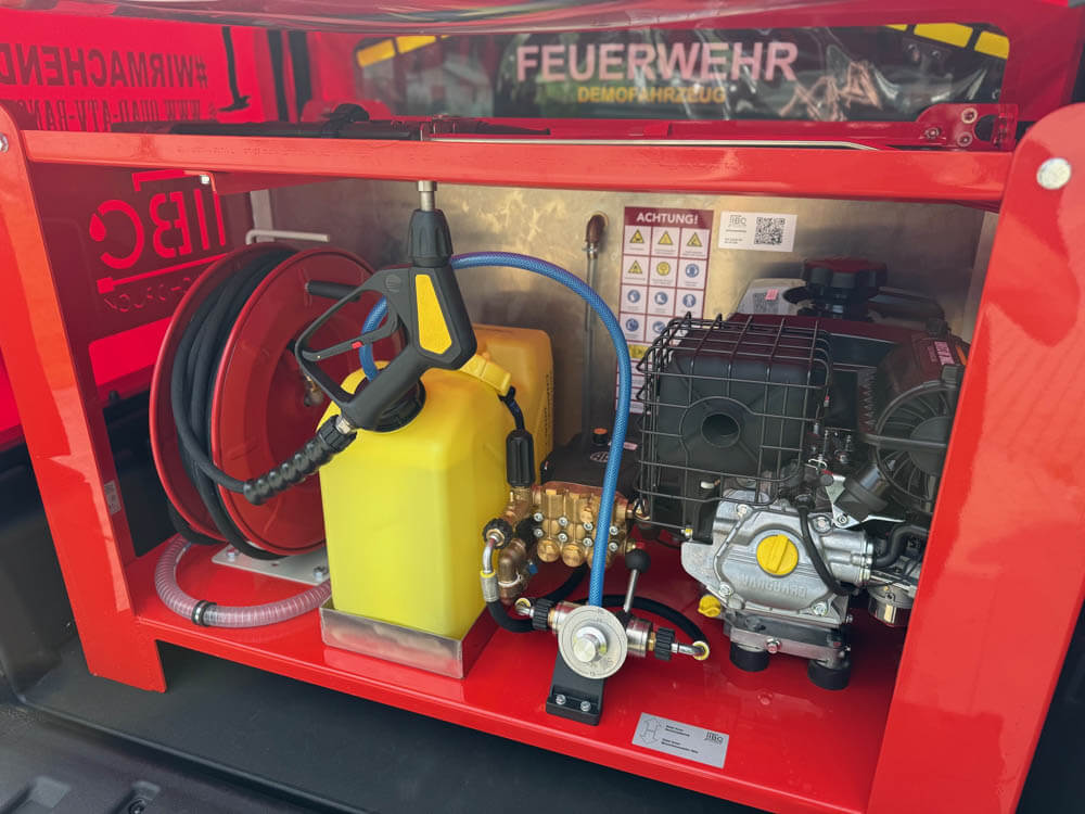 Diese Einheit arbeitet völlig eigenständig – mit 210-Liter-Wassertank, Schnellangriffseinheit, Schaummittel-Zumischung und allem, was zählt, wenn's brennt. Befüllbar über ein naheliegendes Gewässer oder einen Versorgungstanker.
