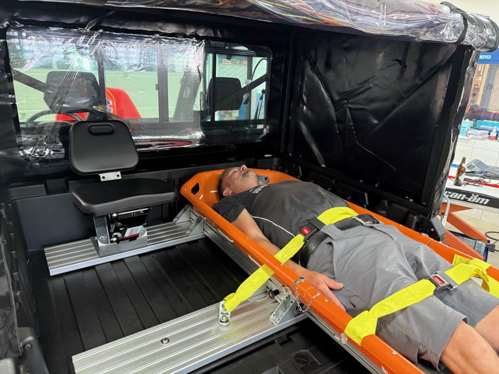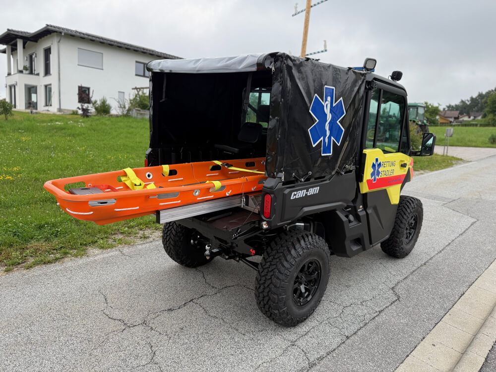 Ob im Wald, am Hang oder im Katastrophengebiet – Verletzte gelangen sicher und schnell zur nächsten erreichbaren Straße, zum Rettungswagen oder zum Helikopter. Die Konstruktion ist universell einsetzbar und für fast alle UTV-Plattformen geeignet – mit geringem Montageaufwand und fahrzeugspezifischer Anpassung.